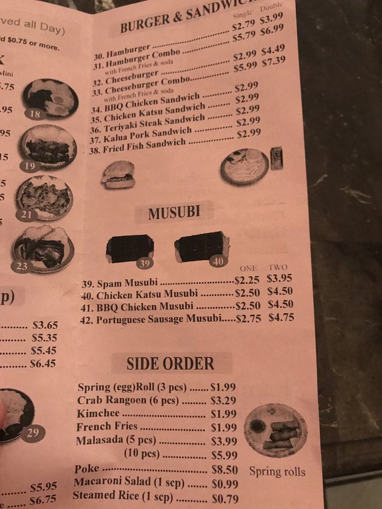- Breakfast Highlights: Start your day right with the savory Spam and Eggs with Rice or indulge in the Portuguese Sausage with Eggs and Rice.