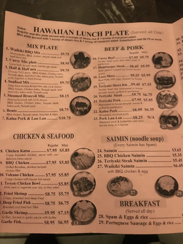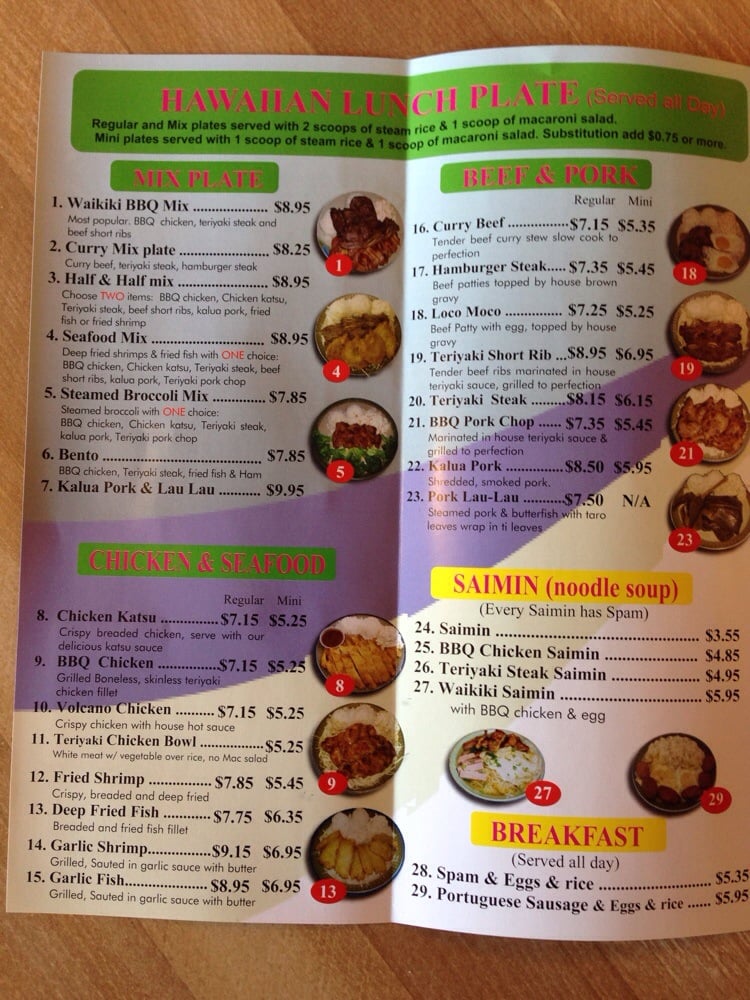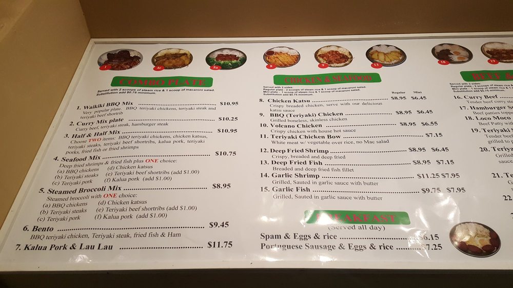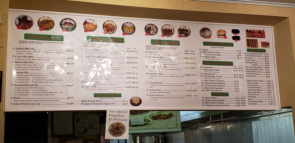 - Combination Plates: The Seafood Combo and Waikiki BBQ Mix Plate offer mouthwatering options that include BBQ chicken, teriyaki steak, and short ribs.
